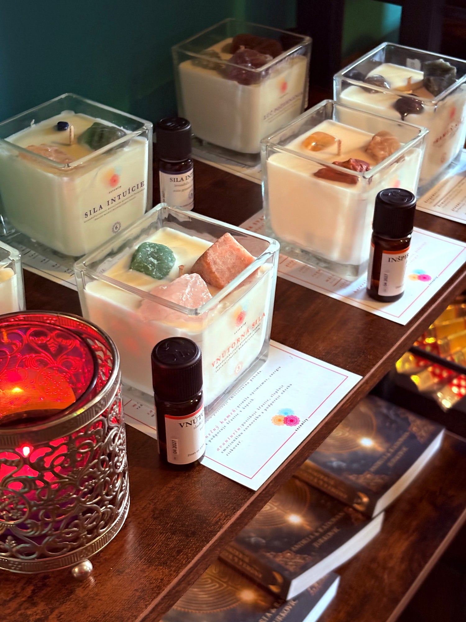 Následne si môžete u nás aj zakúpiť sviečku s vôňou požadovanej čakry, ktorá vám pomôže udržať energetickú rovnováhu aj po návšteve nášho centra.
